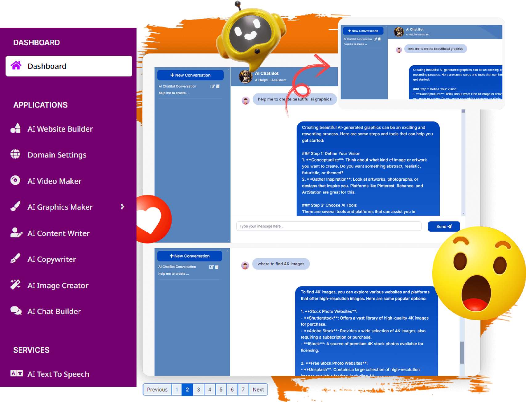 Stunning Websites, Ultra HD 4K Videos, Eye Catchy Graphics & Designs, Converts Your Thoughts Into Attention Grabbing Images, Creates 100% Google Friendly Marketing Content, Replies 24*7*365 To Your Customer Queries